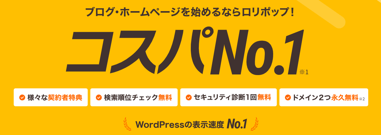 「1分で登録完了!今すぐ無料でお試し」 10日間無料ではじめる ロリポップ!が選ばれる理由 ・月額99円からの圧倒的コスパn・初心者でも簡単にWordPressをインストール可能n・国内最速クラスの表示速度でSEO対策にも有利n・自動バックアップ標準搭載で安心n・24時間365日のサポート体制でトラブルにも即対応 商品名 ロリポップ!(レンタルサーバー) カテゴリ インターネット